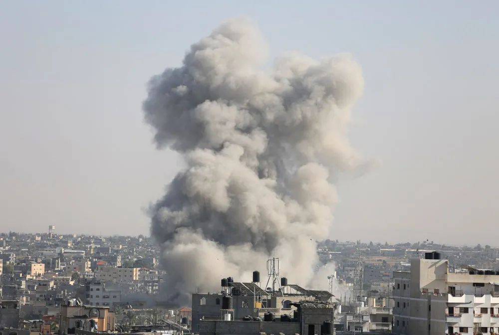 △10月26日,以色列空袭造成的浓烟从加沙地带城市拉法城中升起。新华社发(哈立德·奥马尔摄)