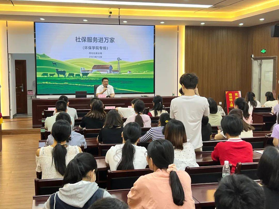 10月22日,南海社保局丹灶分局走进广东环境保护工程职业学院,解答学生关心的就业后参保缴费、社保待遇等问题。