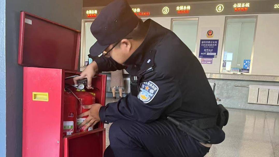 民警重点检查了灭火器设施设备是否齐全,监控线路是否规范,消防安全通道是否畅通,发现隐患1处,对于存在的问题现场记录,按照规定当场下发隐患整改通知书,责令负责人立即整改,并协助工作人员完成整改。通过此次检查车站监控运行状态,提醒铁路职工时刻绷紧安全防范之弦,做好站内监控联防和用电安全,加强日常巡视检查,一旦发现治理隐患及时向民警寻求帮助。