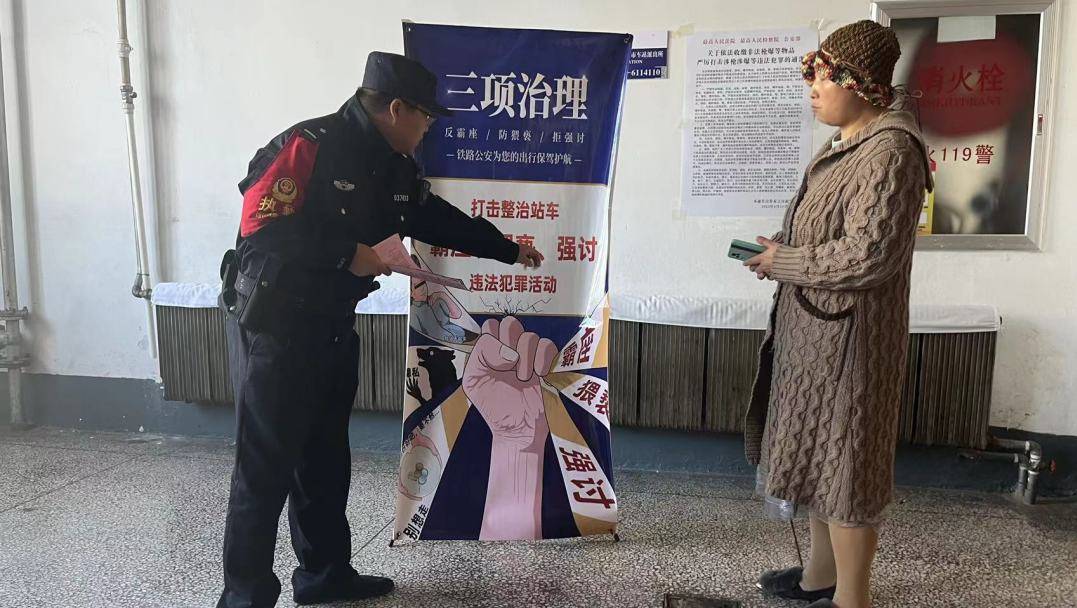 民警充分发挥候车室的宣传预防作用,强调乘客协助,将违法行为可能性掐灭于源头。民警多方位开展“反霸座、防猥亵、拒强讨”等宣传活动,在候车室,售票室以口头宣讲的形式向旅客讲解了当遇到霸座、猥亵、强讨等情况时应积极报警,同时聚焦新闻热点进行普法。