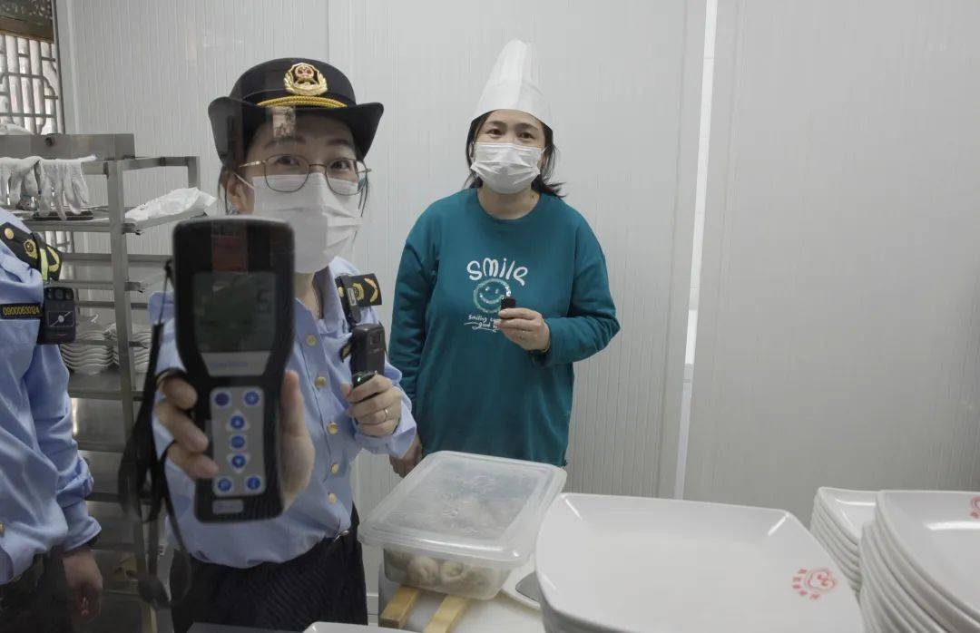 走进真如羊肉馆后厨,真如市场监管所执法人员与志愿者代表一同检查了食品原料的采购和存放、食品溯源记录情况、食品加工过程的操作规范、加工人员的健康状况等常规内容。执法人员利用ATP荧光检测仪对餐具表面洁净度进行随机检测,“除了一些肉眼可见的明显污渍,我们很难判断餐厅餐具的清洁度,而ATP荧光检测仪只需15秒,即可检测餐盘等表面清洁度。”真如市场监管所执法人员介绍,检测仪上显示数值100以下均为合格,“抽样测查的餐盘检测数值为5,数值较小,说明其洁净度较高。”检查情况总体良好,执法人员发现洗碗间天花板有破损,要求该单位限期整改,确保责任落实到位,让消费者吃得安心。