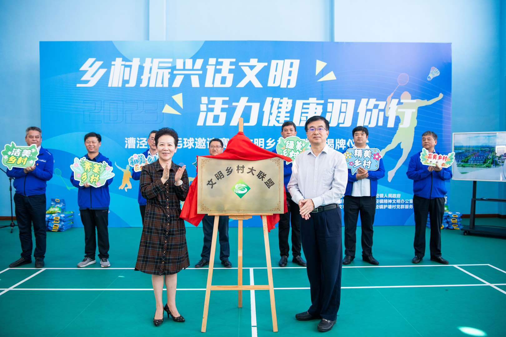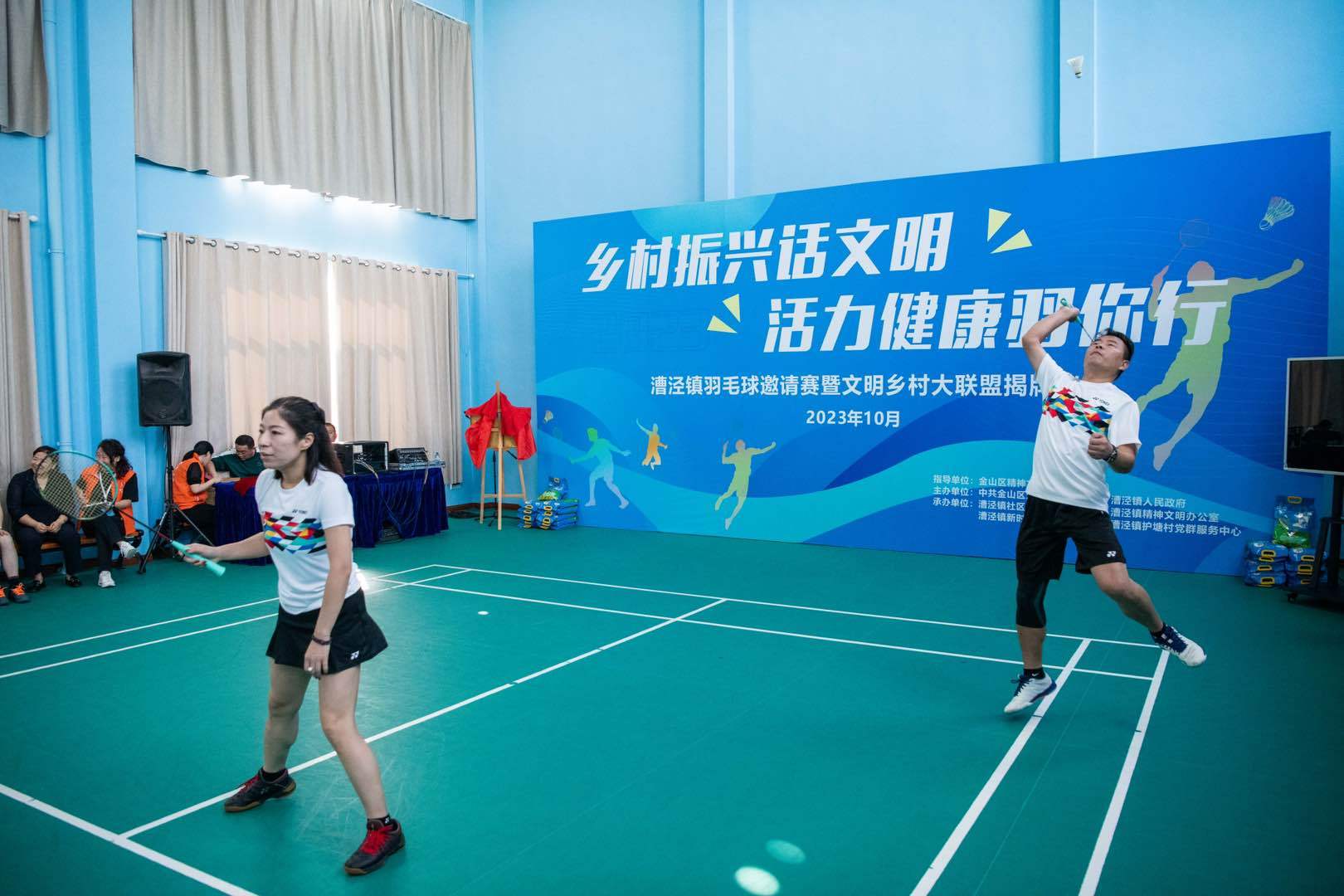 当天,在护塘村体育馆举办了一场以“乡村振兴话文明 活力健康羽你行”为主题的漕泾镇羽毛球邀请赛。这家体育馆也是金山区唯一一家村级体育馆,是漕泾镇羽毛球队的训练基地,也是村民体育健身的好去处。护塘村历来重视群众体育文化,积极开展村民运动会、月月有赛事、少儿羽毛球培训班等,将参加人群覆盖到全村村民,进一步聚民心、聚合力,以精神文明建设推动各项工作的开展。来自漕泾镇和这7个文明村的8支参赛队伍参加男女混双比赛,以运动形式开启了这场“文明大联盟”首秀。在赛场上,队员们奋力拼搏,挥洒汗水,展现了积极向上、团结协作、敢于拼搏的体育精神。