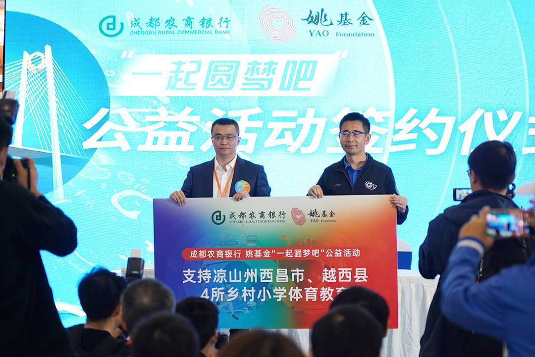 在当天的活动中,成都农商银行还与姚基金展开“一起圆梦吧”公益项目合作与签约,预计在2023-2024年共支持15所希望小学的“姚基金希望小学篮球季项目”,通过硬件捐赠、体育支教、集训和联赛等方式改善乡村地区体育教育条件,帮助青少年在教育、体育运动、营养、心理等方面获得全面发展。