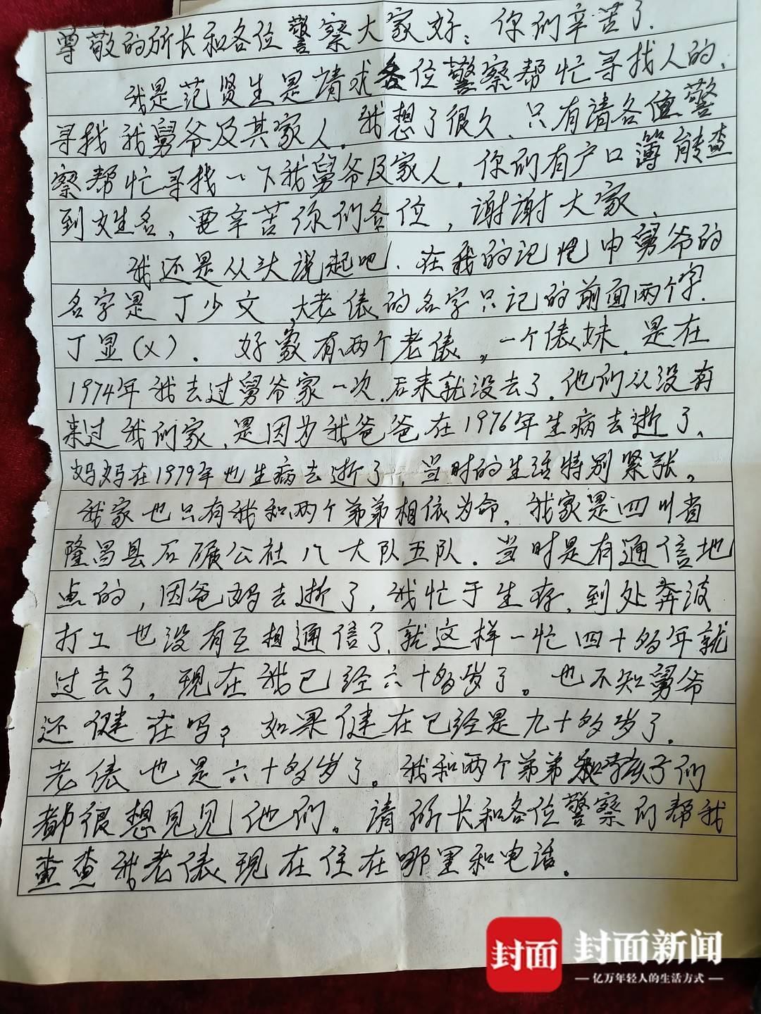 70岁侄子写信寻亲