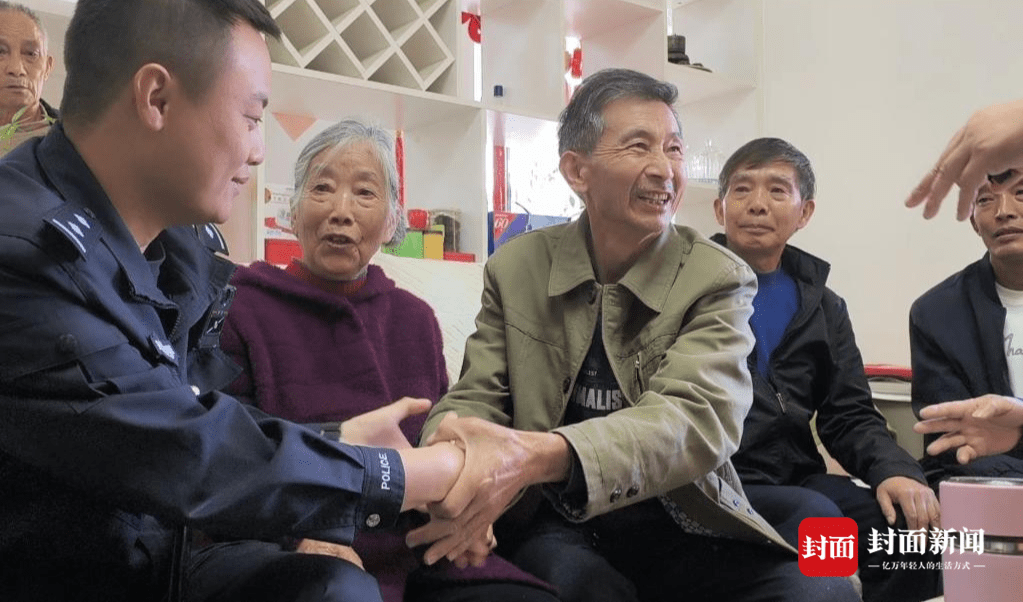 认亲现场,范贤生和民警握手,表达感谢