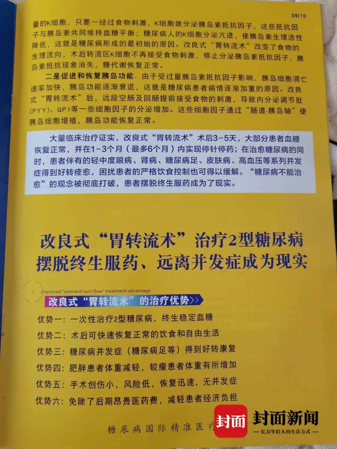 泰和医院发放的宣传册称,这项手术2004年被引进中国用于治疗糖尿病,但亚洲部分人群手术后会出现腹泻及营养不良,覃某升医生作为创始人带领科研攻关组,改良创造出适合亚洲人体质的改良式“胃转流术”;患者须经过严格医学检测、符合条件才能进行手术,一次性治疗可实现停针停药,术后不复发,可吃水果和甜食。