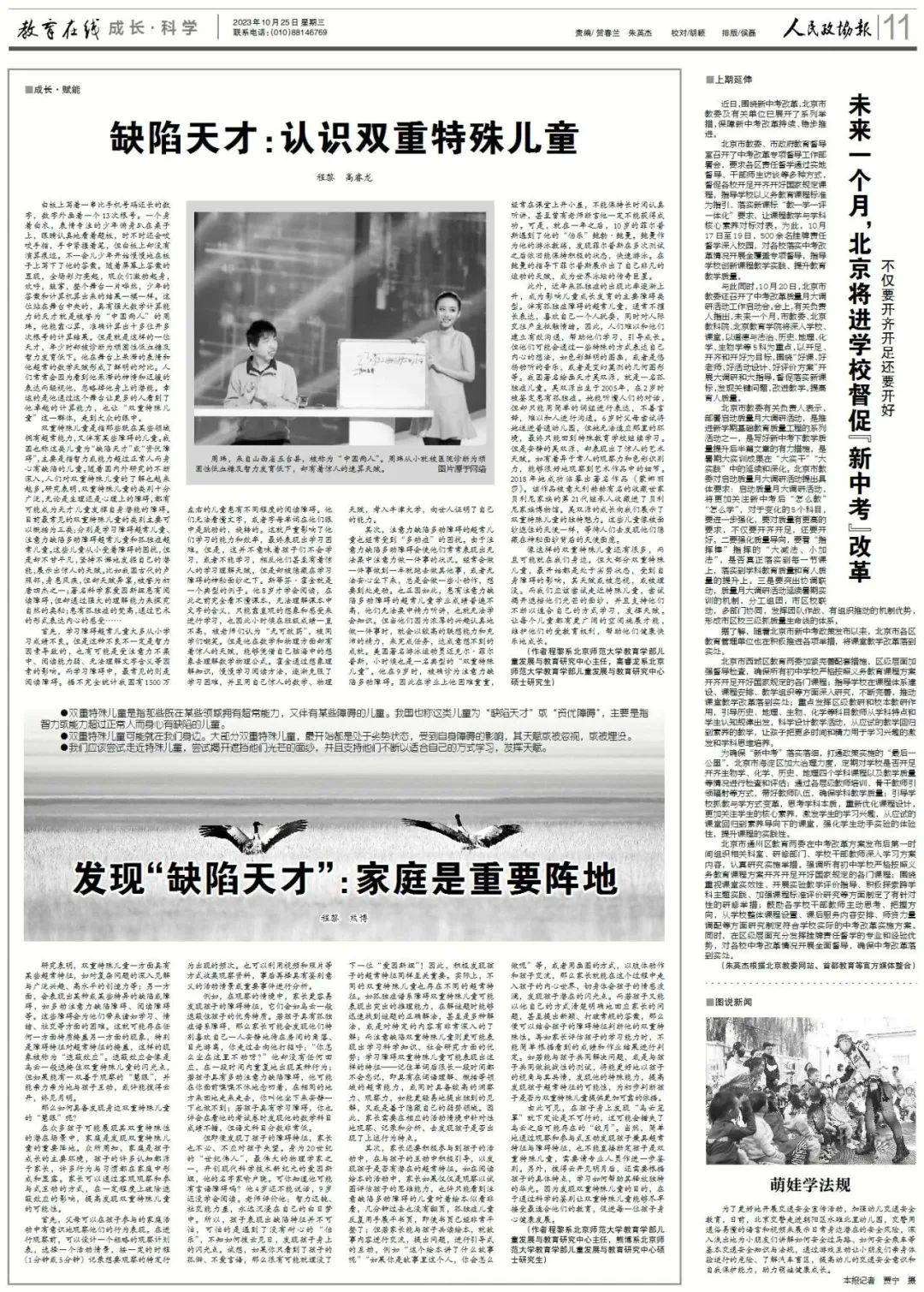 像这样的双重特殊儿童还有很多,而且可能就在我们身边。但大部分双重特殊儿童,最开始都是处于劣势状态,受到自身障碍的影响,其天赋或被忽视,或被埋没。而我们应该尝试走近特殊儿童,尝试揭开遮挡他们光芒的面纱,并且支持他们不断以适合自己的方式学习,发挥天赋。让每个儿童都有更广阔的空间施展才能,维护他们的受教育权利,帮助他们健康快乐地成长。