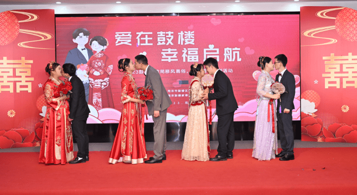百年恩爱双心结,爱在鼓楼幸福时。10月28日,由鼓楼区民政局主办,南京鼓楼家事法律发展中心承办的“爱在鼓楼 幸福启航”集体婚礼活动仪式在江东街道睿城社区综合服务中心圆满举行!多对新人在现场工作人员的见证下牵手誓约,开启幸福的人生篇章!