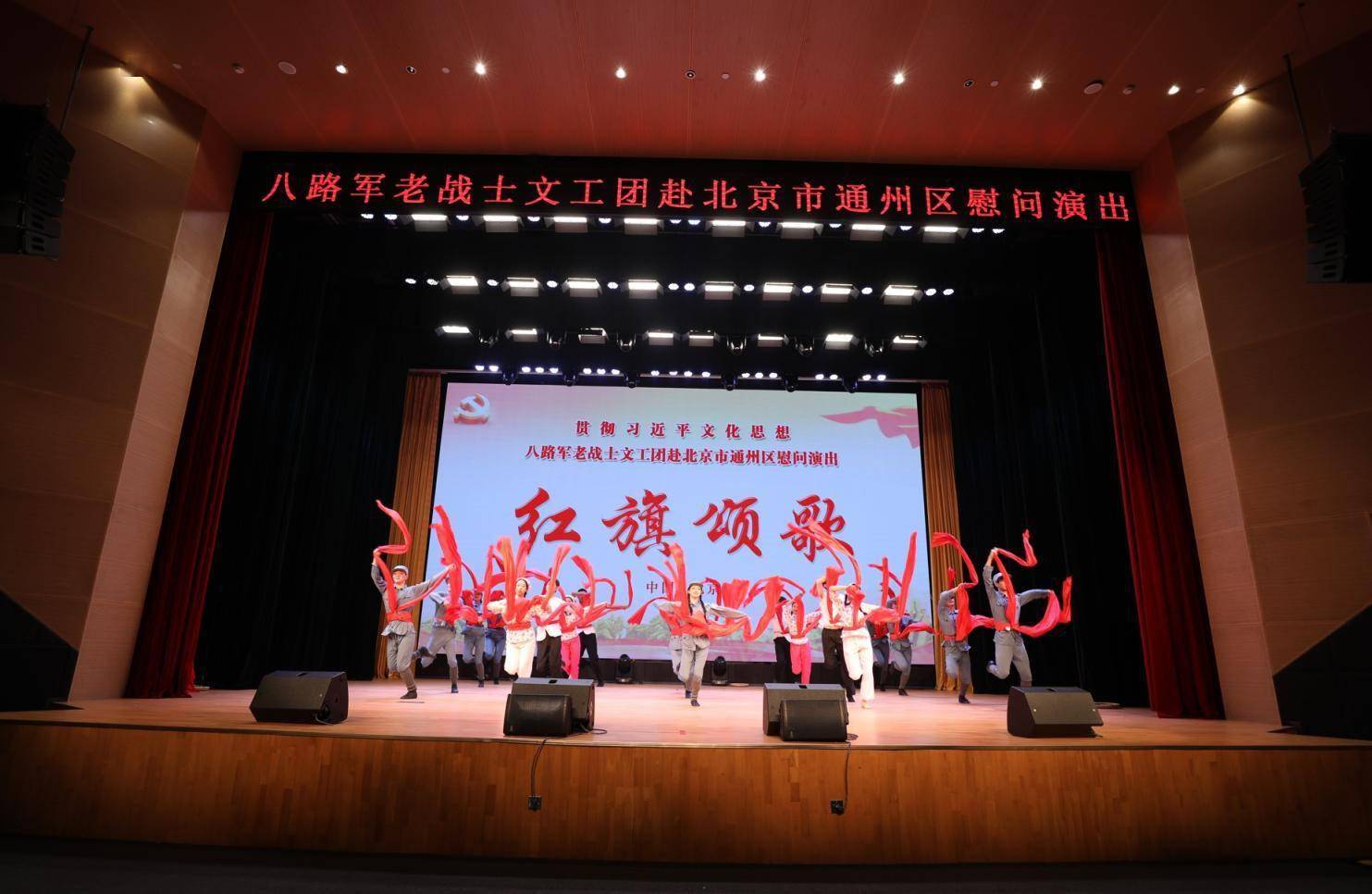 伴随着令人心潮澎湃的《红旗颂》舞蹈,10月27日,八路军老战士文工团在北京市通州区潞城镇举办两场“红旗颂歌”慰问演出,用舞蹈、合唱、独唱、杂技、曲艺、诗朗诵等艺术形式传承红色血脉。