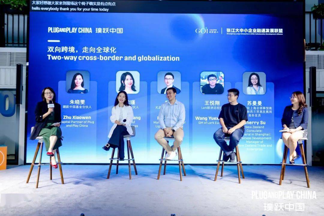 圆桌论坛环节,由璞跃中国基金合伙人朱晓雯担任主持,同DCM创投合伙人黄惟瑾、光源资本董事总经理娄洋、Lark欧洲总经理王悦翔和新西兰驻上海总领事馆商务处、新西兰贸易发展局商务官员苏曼曼共话“双向跨境,走向全球化”的创新路径,围绕出海趋势、投资机遇等诸多热门话题就各自切身体悟展开探讨。