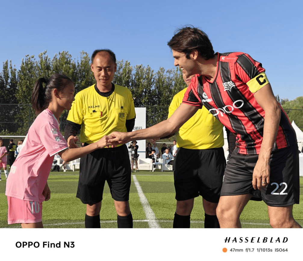 卡卡与女足小将在比赛中互动。图片来源:OPPO