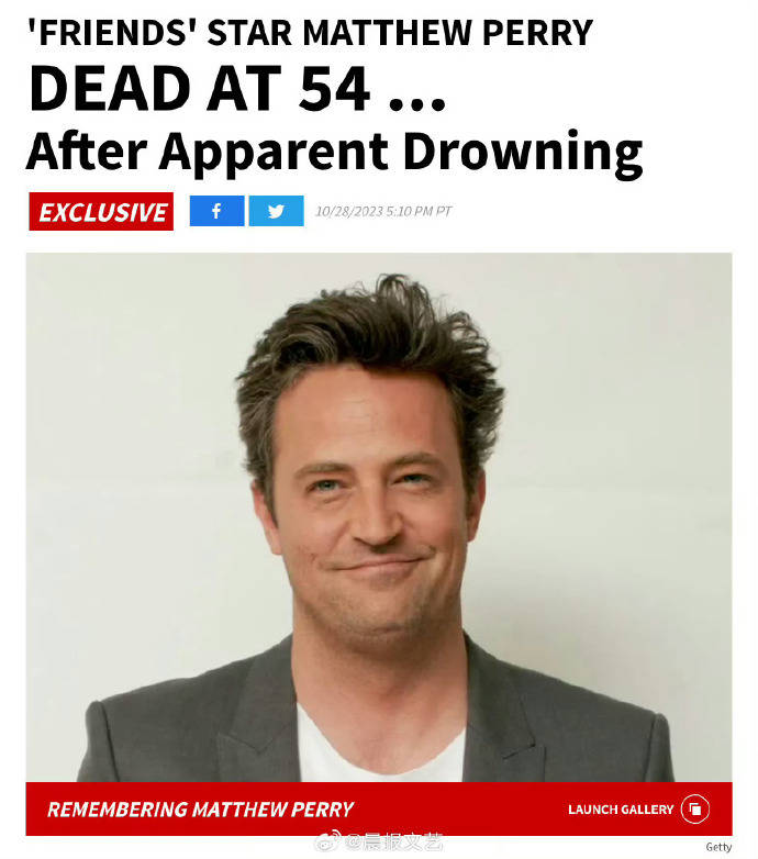 据环球网29日援引法新社、美国《纽约邮报》等多家外媒援引美国娱乐新闻网站TMZ消息称,参演美国知名情景喜剧《老友记》的演员马修·派瑞去世,年仅54岁。