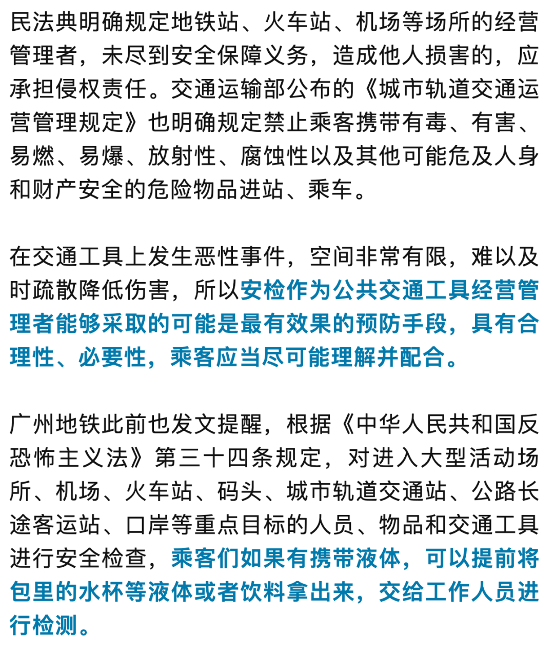 乘客应配合、支持地铁安检