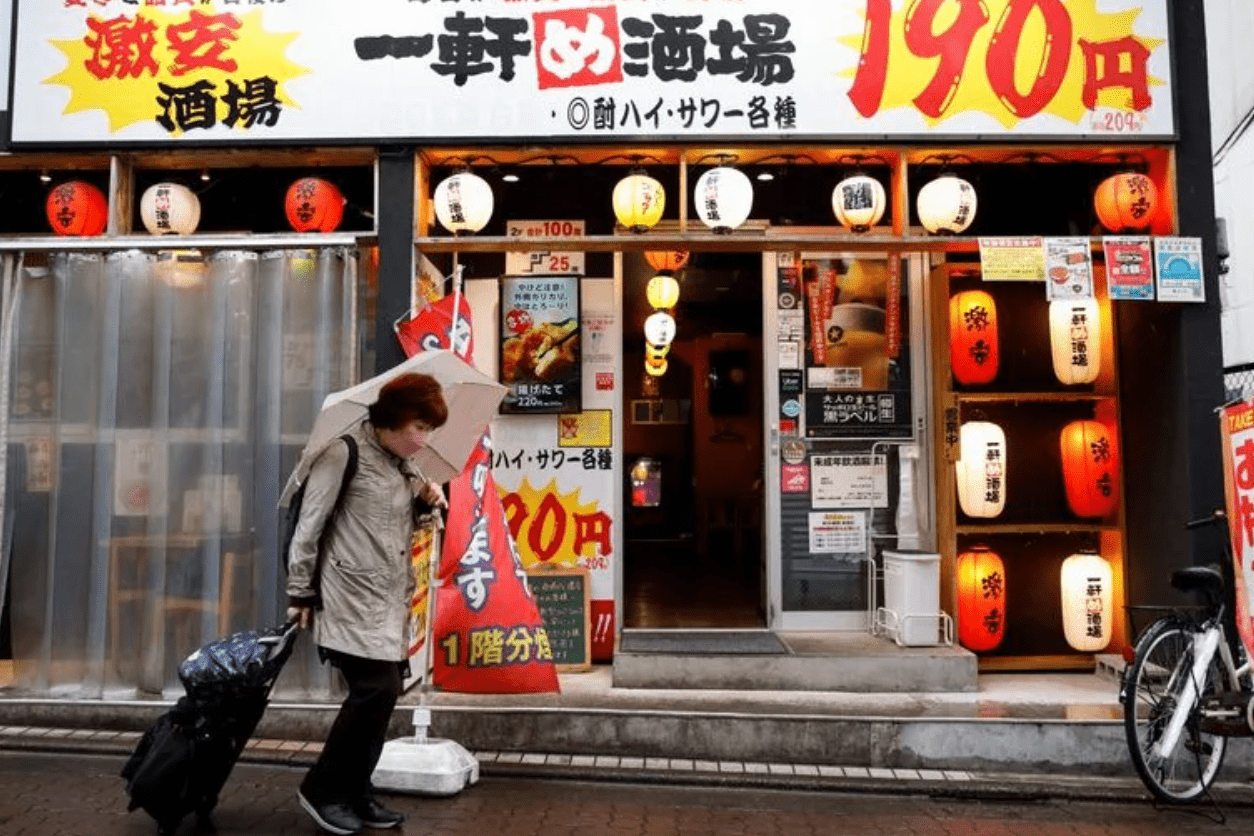 一名日本老人走过廉价居酒屋。(图源:社交媒体)