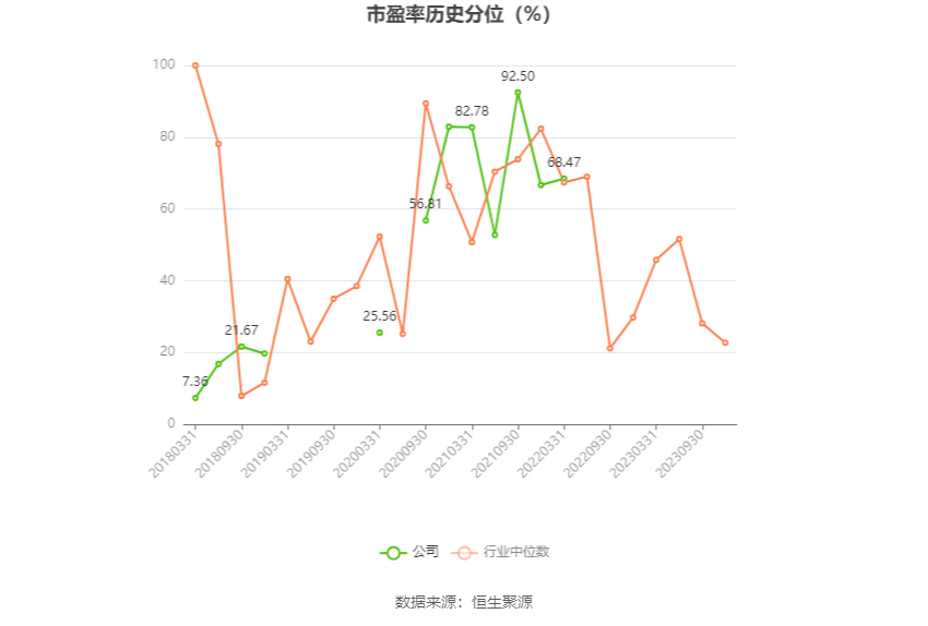 市盈率为负时,不显示当期分位数,会导致折线图中断。
