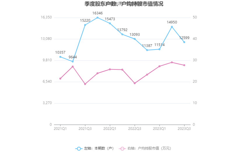 筹码集中度方面,截至2023年三季度末,公司股东总户数为1.26万户,较上半年末下降了2351户,降幅15.73%;户均持股市值由上半年末的29.11万元下降至27.77万元,降幅为4.60%。