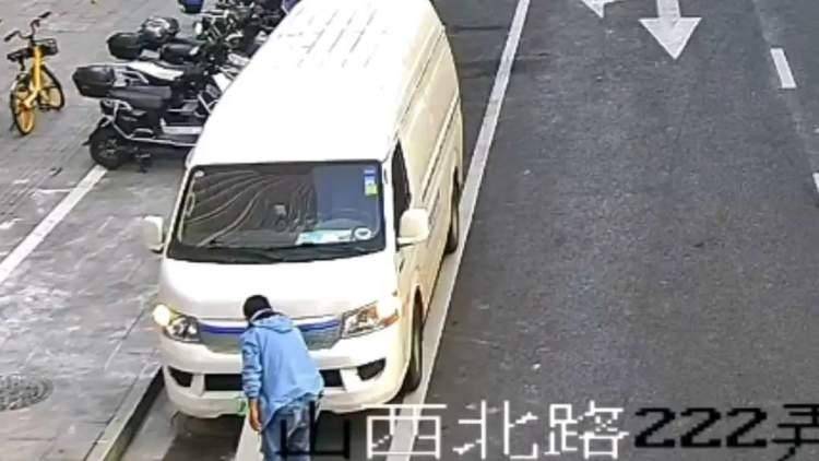 10月19日上午7点3刻,静安公安分局交警支队民警在巡逻时发现,山西北路路旁停放的一辆小货车前,有块木板挡住了部分机动车号牌。见到民警后,不远处的驾驶员慌忙跑了过来,赶紧撤下了挡住号牌的木板。