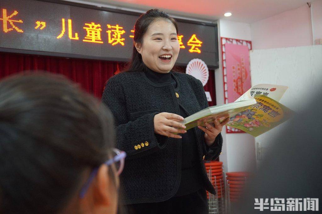 10月28日周六,下午两点,市北区洛阳路街道郑州路社区居委会的活动大厅里,一场热闹的“儿童读书分享会”正在进行。“儿童主任”侯琳站在长桌前,绘声绘色地读着寓言故事《乌鸦喝水》,一帮孩子们围坐在长桌两侧,目光专注地盯着她。