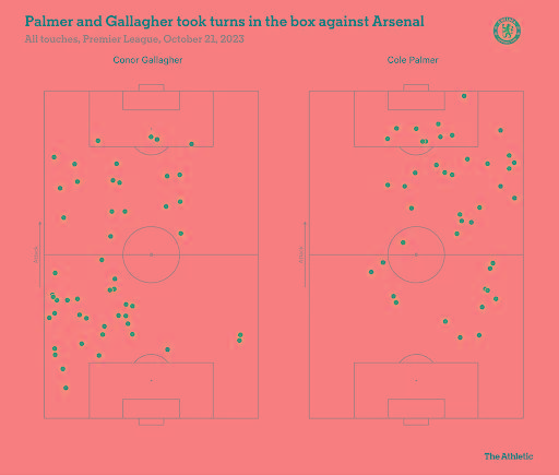 但其实这样的轮转很适合两名球员的发挥:帕尔默可以充当进攻的创造者,把阿森纳中后卫加布里埃尔牵扯出来,为斯特林腾出空间,而加拉格尔则可以插到禁区内。而且两人都经常出现在中场,让切尔西在比赛初期就控制了局面。
