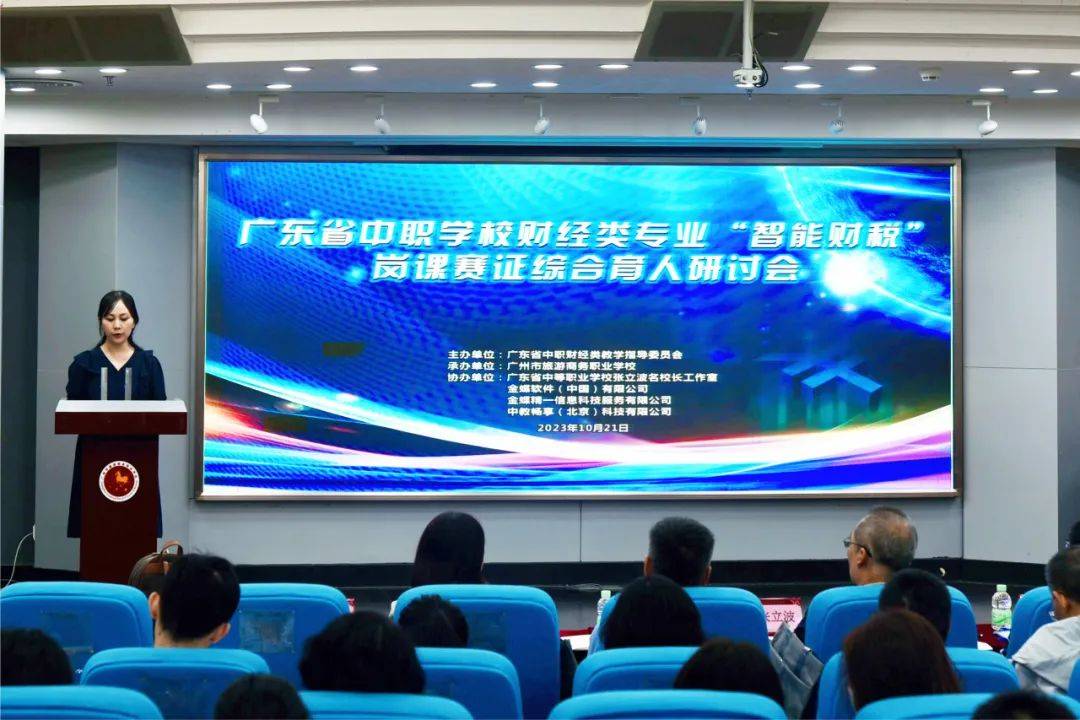 2023年10月21日,广东省中职学校财经类专业“智能财税”岗课赛证综合育人研讨会在广州市旅游商务职业学校成功举办。研讨会主要目的是,引领会计事务、纳税事务和统计事务等专业进行数字化改革,创新人才培养模式,做好中高衔接教学工作,深化职业教育产教融合。同时,通过深度解析“智能财税基本技能”国赛变化和备赛技巧,提高中职学校的综合育人水平,创拓学生成长成才路径,进一步加强各地区院校的沟通合作,共同推动中职学校财经类专业的发展。