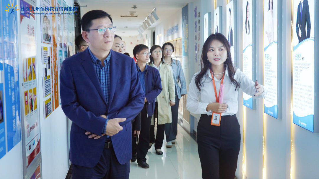 随后,孙会长一行在参观山东九州金榜教育咨询集团企业文化长廊时,对其中展示的公司发展历程、企业文化、团队建设等内容表现出了浓厚的兴趣。他们不时驻足观看,详细询问公司发展情况,并对九州金榜教育咨询集团在十余年内取得的成就表示赞叹。