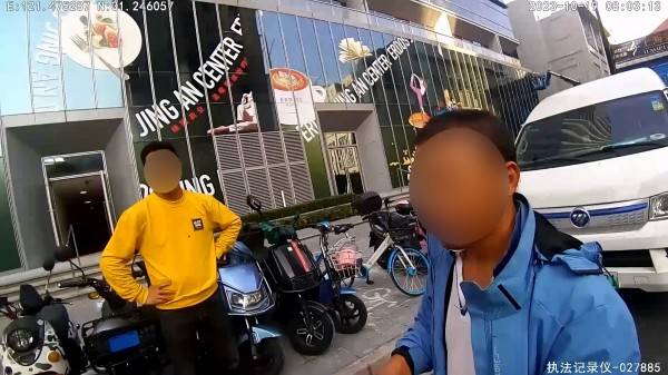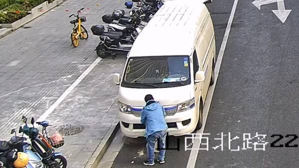 2023年10月19日7时45分许,静安公安分局交警支队民警在七浦路商圈巡查过程中发现,路旁停靠着一辆无人小货车,后备箱门高高翘起,显得格外扎眼。这条路是禁停道路,路口两侧均设有明显的禁止停车警告标志。民警上前查看,发现蹊跷,原来,车头前还用一块木板遮住了部分机动车号牌。