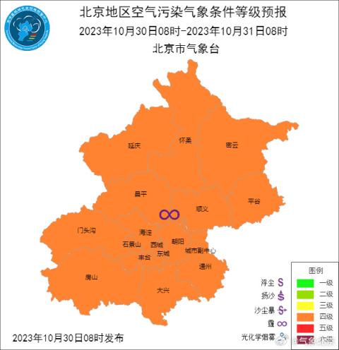 @气象北京 10月30日上午,发布今天白天到今天夜间北京地区空气污染气象条件预报: