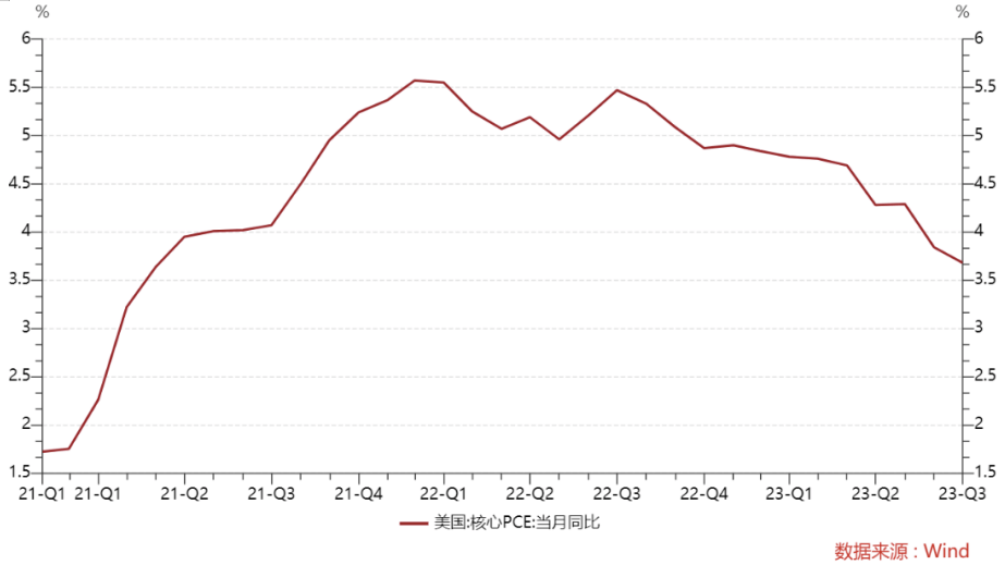 海外方面,得益于消费支出激增,美国第三季度GDP按年率计算环比增长4.9%,超出市场预期并创近两年来最快增速。但同时美国9月核心PCE物价指数同比上升3.7%,创2021年5月来新低,预期为3.7%,前值为3.9%,通胀数据仍在下滑趋势中。