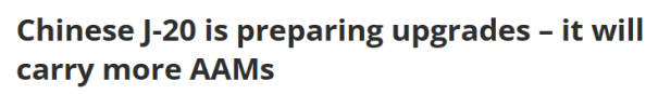 首先就是发动机升级带来的影响,美军比较武断地得出一个结论,歼-20可能正在升级,以容纳更多的空对空导弹。目前来看歼-20在不影响隐身能力的情况下,能搭载6枚空对空导弹。