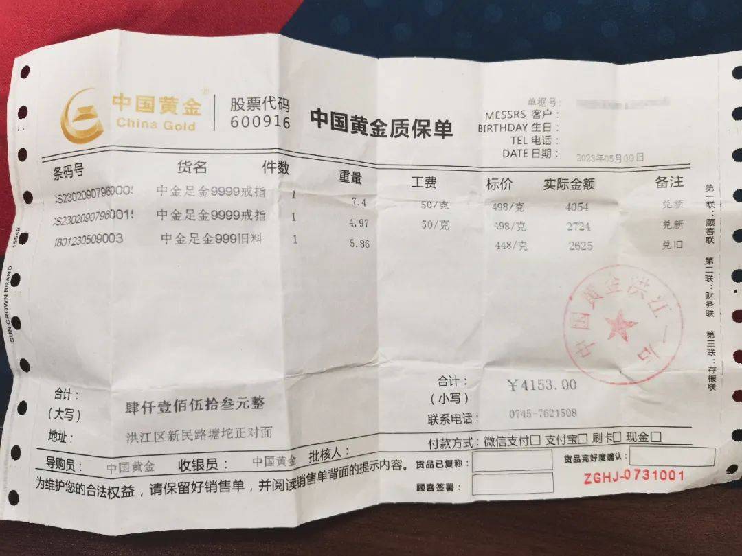 而金戒指的发票