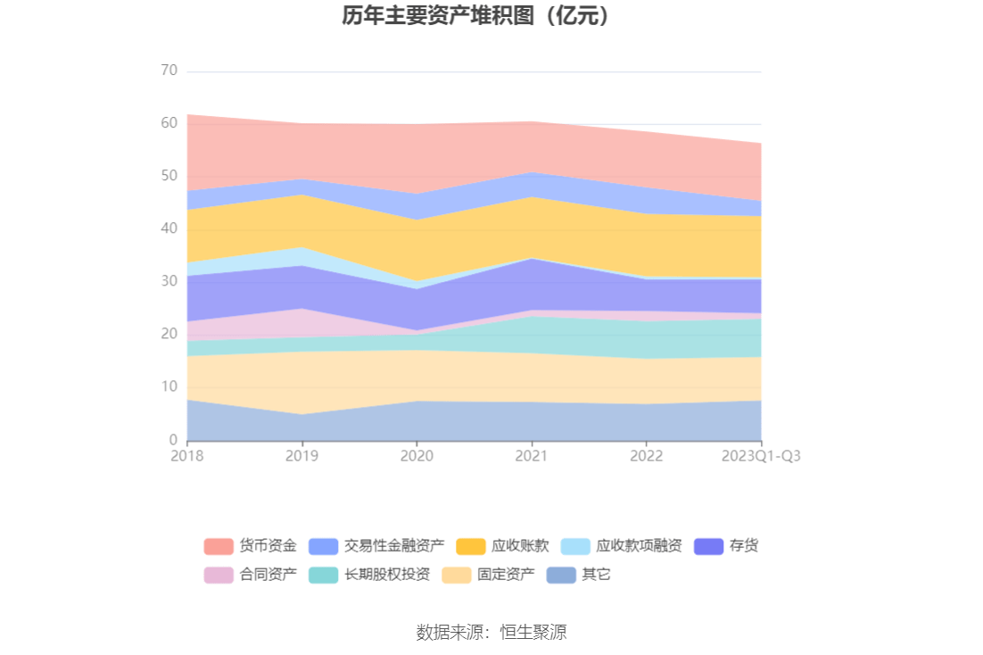 资产重大变化方面,截至2023年三季度末,公司交易性金融资产较上年末减少42.13%,占公司总资产比重下降3.42个百分点;其他流动资产较上年末增加99.15%,占公司总资产比重上升2.22个百分点;合同资产较上年末减少44.17%,占公司总资产比重下降1.38个百分点;货币资金较上年末增加3.36%,占公司总资产比重上升1.34个百分点。