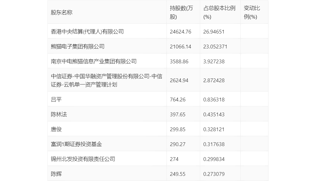 三季报显示,2023年三季度末公司十大流通股东中,新进股东为富润1期证券投资基金,取代了上半年末的刘金华。在具体持股比例上,香港中央结算(代理人)有限公司、陈辉持股有所上升,中信证券-中国华融资产管理股份有限公司-中信证券-云帆单一资产管理计划持股有所下降。