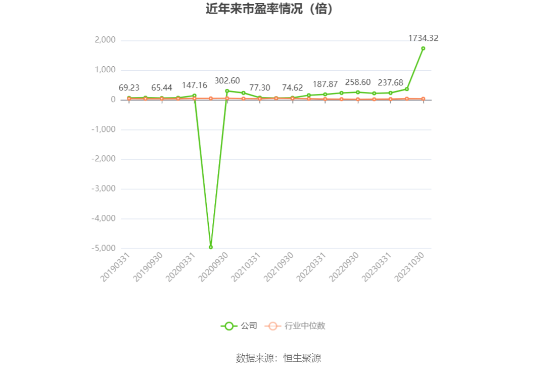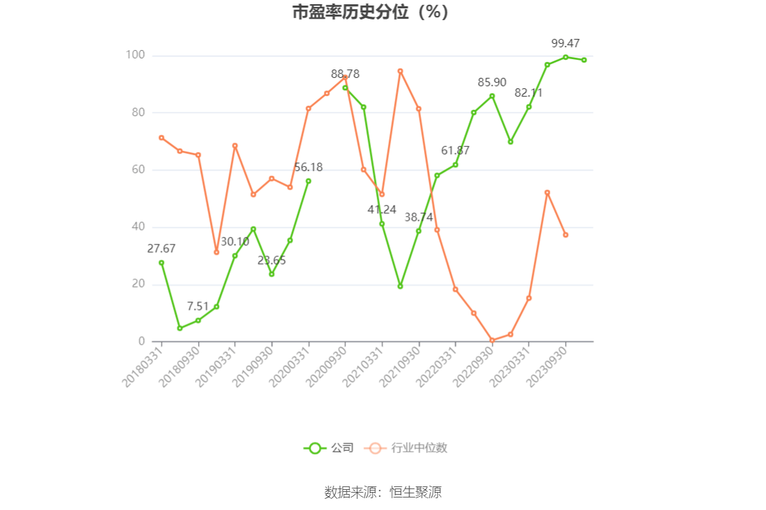 市盈率为负时,不显示当期分位数,会导致折线图中断。