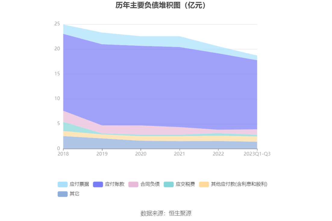 负债重大变化方面,截至2023年三季度末,公司应付账款较上年末减少9.63%,占公司总资产比重下降1.60个百分点;应付票据较上年末减少32.40%,占公司总资产比重下降0.71个百分点;合同负债较上年末增加63.53%,占公司总资产比重上升0.81个百分点;应付职工薪酬较上年末减少49.59%,占公司总资产比重下降0.44个百分点。