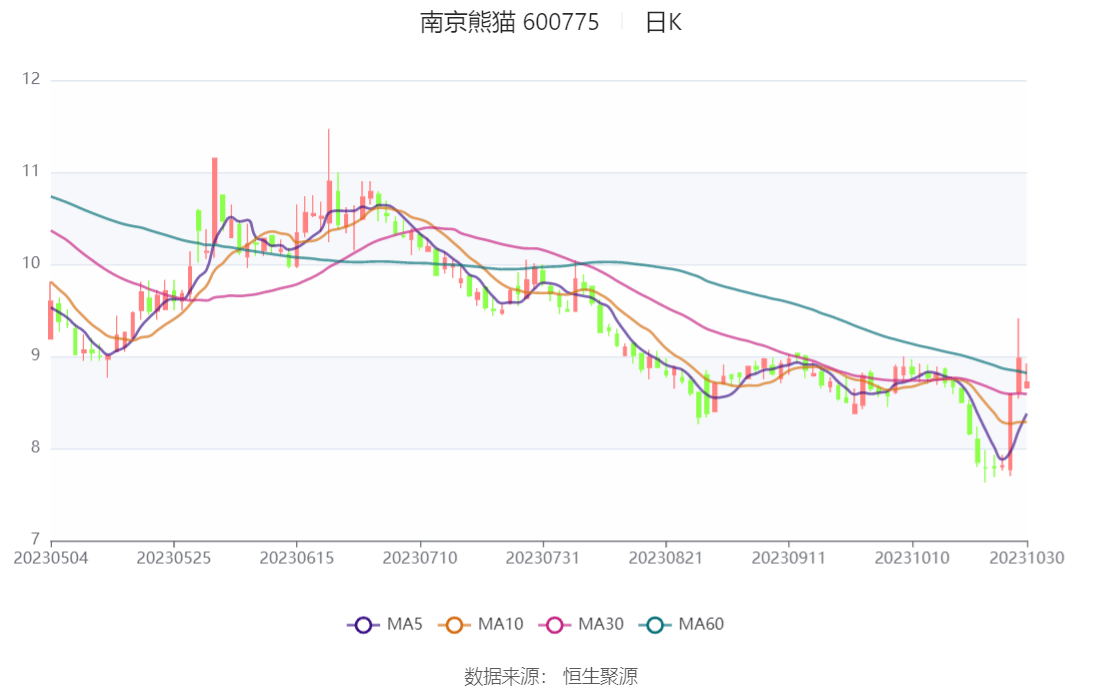 以10月30日收盘价计算,南京熊猫目前市盈率(TTM)约为1734.32倍,市净率(LF)约为2.27倍,市销率(TTM)约为2.53倍。