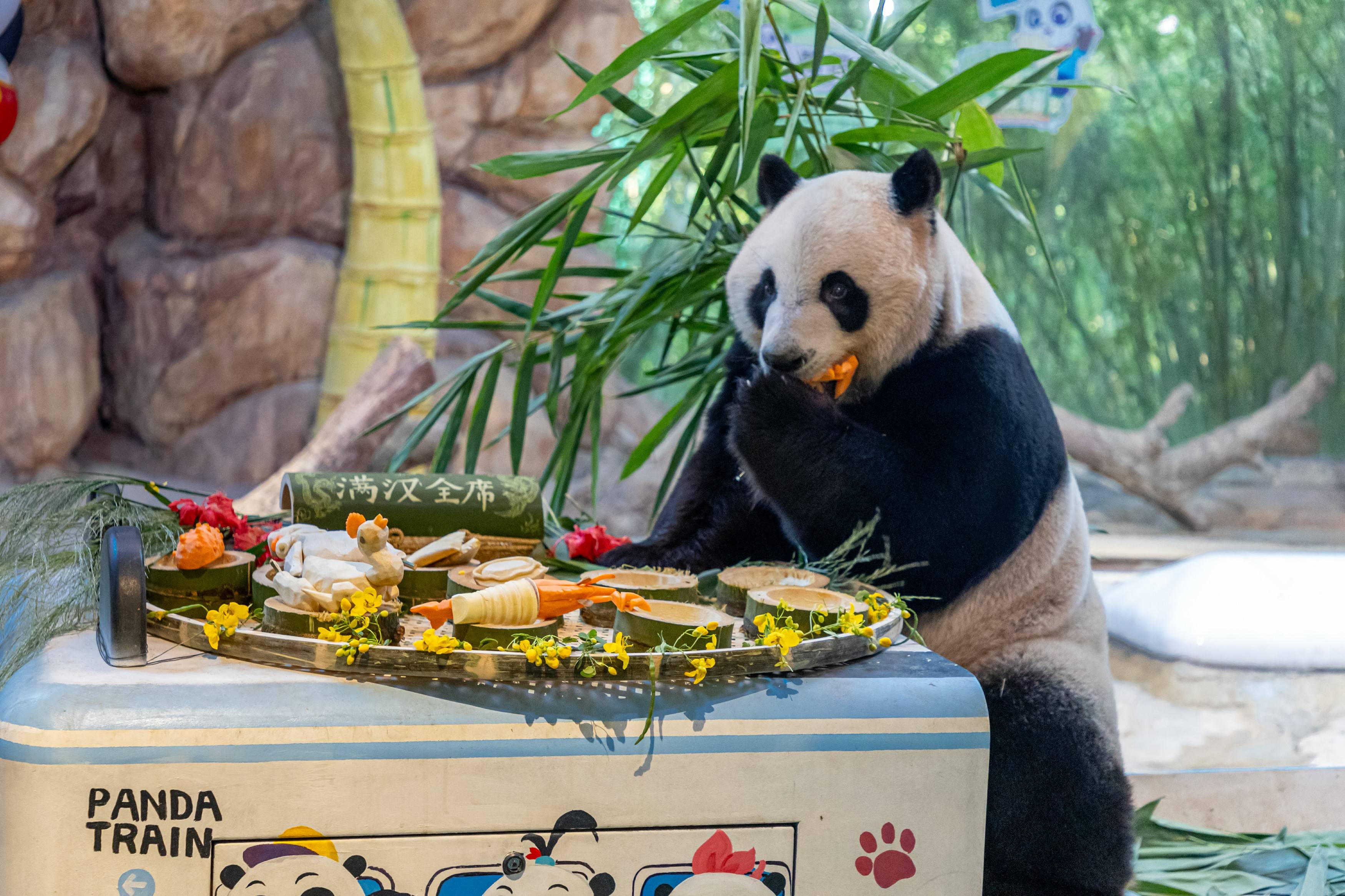 大熊猫酷酷享用美食