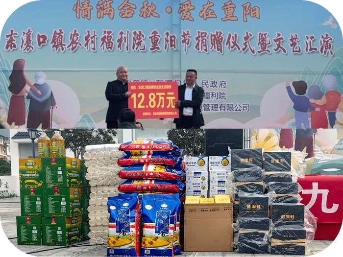 2023年10月23日正逢重阳佳节,湖北领康健康管理有限公司为了更好的弘扬中华民族敬老、爱老的优良传统,三位老总不负佳节美意,走进巴东县东瀼口镇福利院,开展以东壤口镇政府和东壤口镇福利院主办的“九九重阳节,浓浓敬老情”为主题的活动。