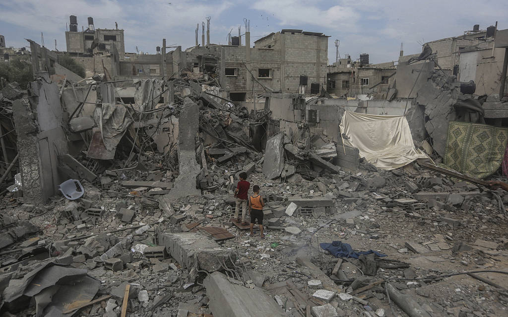 当地时间2023年10月29日,以色列空袭后,加沙地带的建筑变为一片废墟。