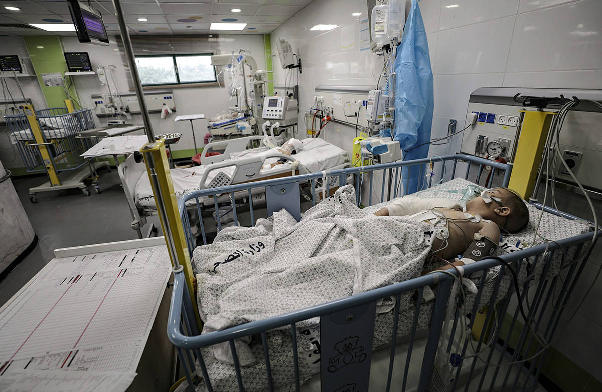 当地时间2023年10月27日,加沙地带汗尤尼斯,受伤的巴勒斯坦儿童在医院接受治疗。