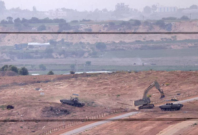 当地时间2023年10月29日,加以边境,以军坦克和挖掘机越过边境进入加沙地带。