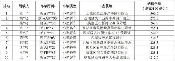 2023年10月杭州主城区十大“醉驾”名单。