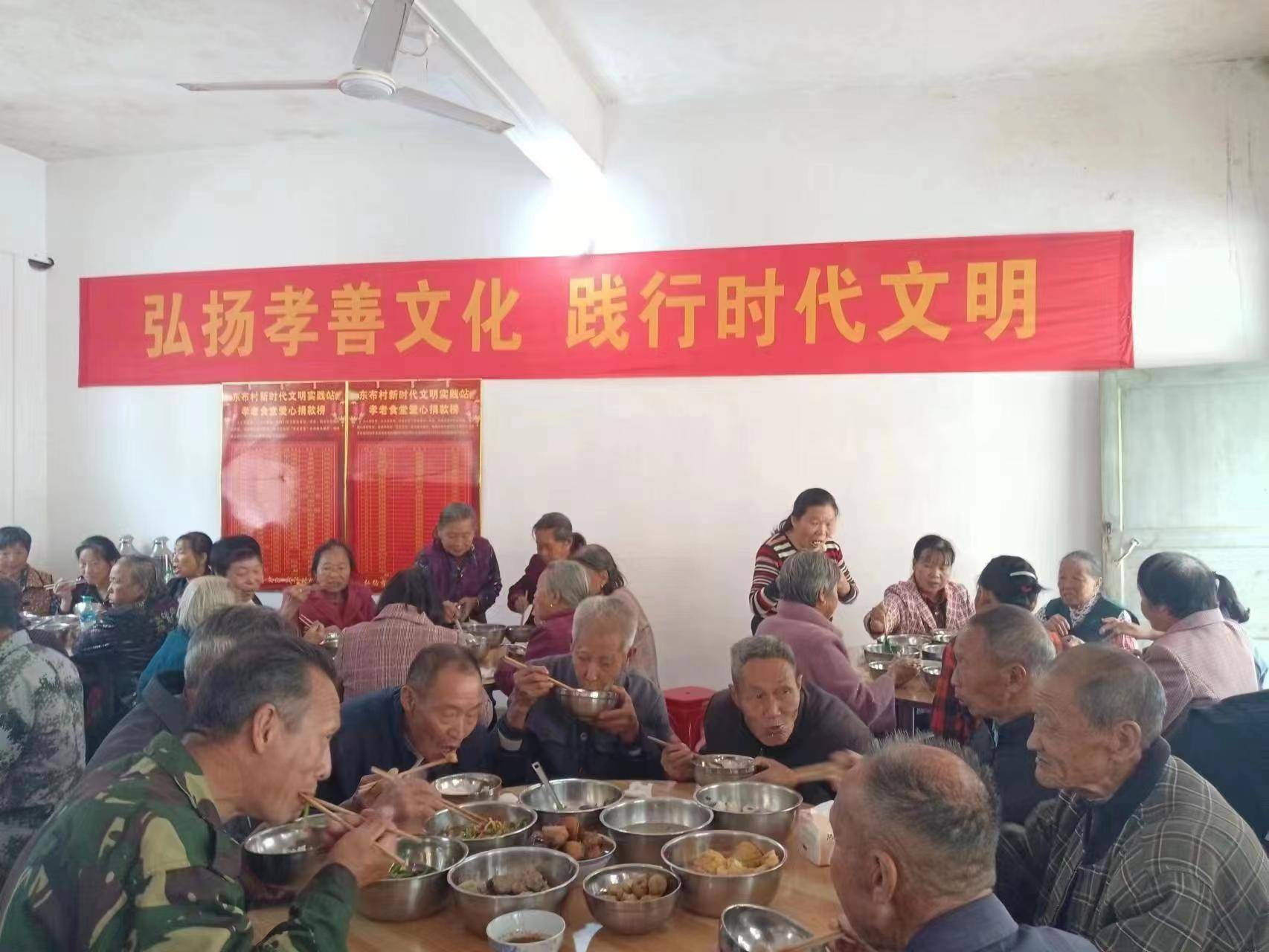 东布村党支部牵头成立了敬老孝老理事会,由热衷公益事业的党员干部和经商、从政、从教等乡贤组成,致力于宣传发动村民捐资捐物用于开展敬老孝老活动和开办孝老食堂,通过日常走访慰问、组织健康体检、开展文娱活动等方式关心关爱村内老人,提升广大老年人获得感、幸福感,倡树社会文明新风。