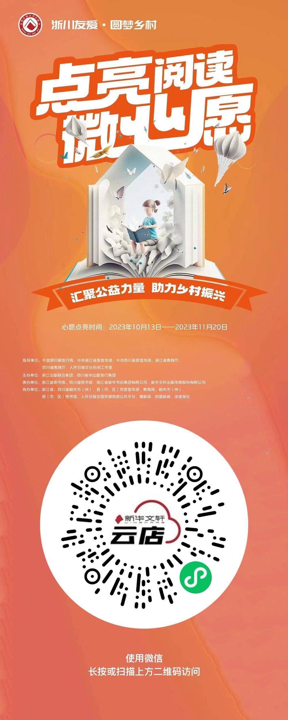 近日,“浙川友爱·圆梦乡村——点亮微心愿”活动点亮仪式举行。记者了解到,打开“新华文轩云店”小程序,在首页即可进入“点亮微心愿”活动。