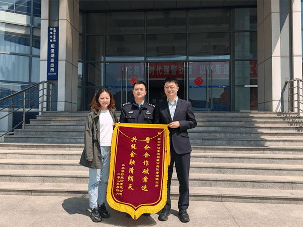 江苏银行向办案民警赠送锦旗(央广网发 江苏银行供图)