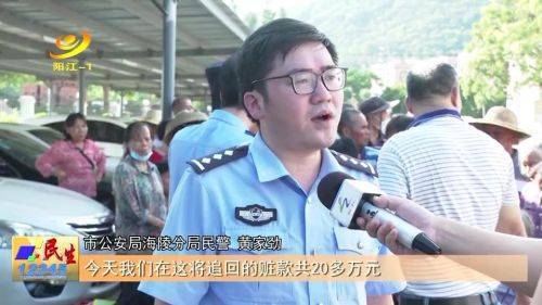 市公安局海陵分局民警 黄家劲:今天我们在这将追回的赃款共20多万元集中返还给受害群众,下一步,海陵公安将继续以人民为中心,严厉打击各类危害人民群众生命财产安全的违法犯罪行为,全力确保辖区社会治安大局持续稳定。