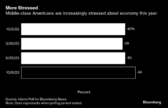据这项哈里斯民意调查,57%的中产阶级受访者表示,更高的借贷成本对他们的财务状况产生了负面影响。
