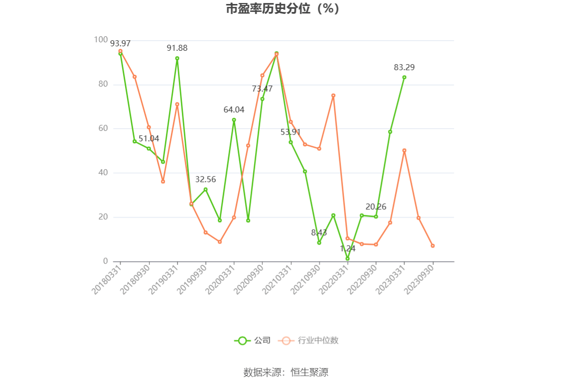 市盈率为负时,不显示当期分位数,会导致折线图中断。