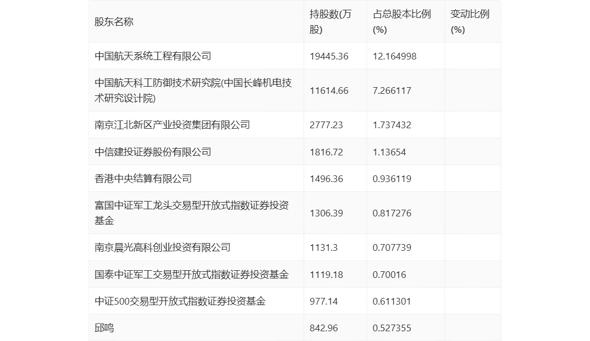 三季报显示,2023年三季度末公司十大流通股东中,新进股东为中证500交易型开放式指数证券投资基金,取代了上半年末的博时军工主题股票型证券投资基金。在具体持股比例上,中信建投证券股份有限公司、富国中证军工龙头交易型开放式指数证券投资基金、国泰中证军工交易型开放式指数证券投资基金持股有所上升,香港中央结算有限公司持股有所下降。
