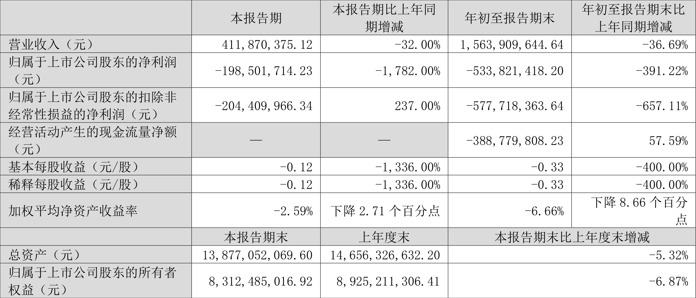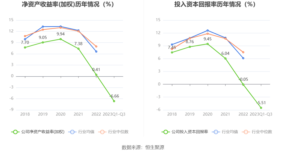 数据显示,2023年前三季度公司加权平均净资产收益率为-6.66%,较上年同期下降8.66个百分点;公司2023年前三季度投入资本回报率为-5.51%,较上年同期下降7.14个百分点。
