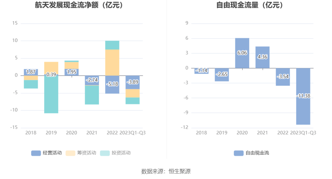 进一步统计发现,2023年前三季度公司自由现金流为-11.38亿元,上年同期为-10.67亿元。